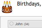 Das Kalendersystem enthält als Systemkalender den Geburtstagskalender. Er zeigt die Geburtstage aller Mitglieder der Seite an. Du findest das Alter der Mitglieder in den Klammern hinter ihrem Benutzernamen.