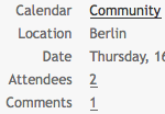 Unterhalb des Termins können Kommentare zum Termin gelesen oder geschrieben werden. Die neuesten Kommentare findest du immer ganz oben, direkt unter dem Termin. Abhängig von den eingestellten Kalenderrechten, kannst du auch Kommentare bearbeiten oder entfernen.